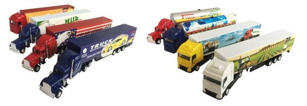 geschenkdoos met 8 metalen trucks met plastic onderdelen.