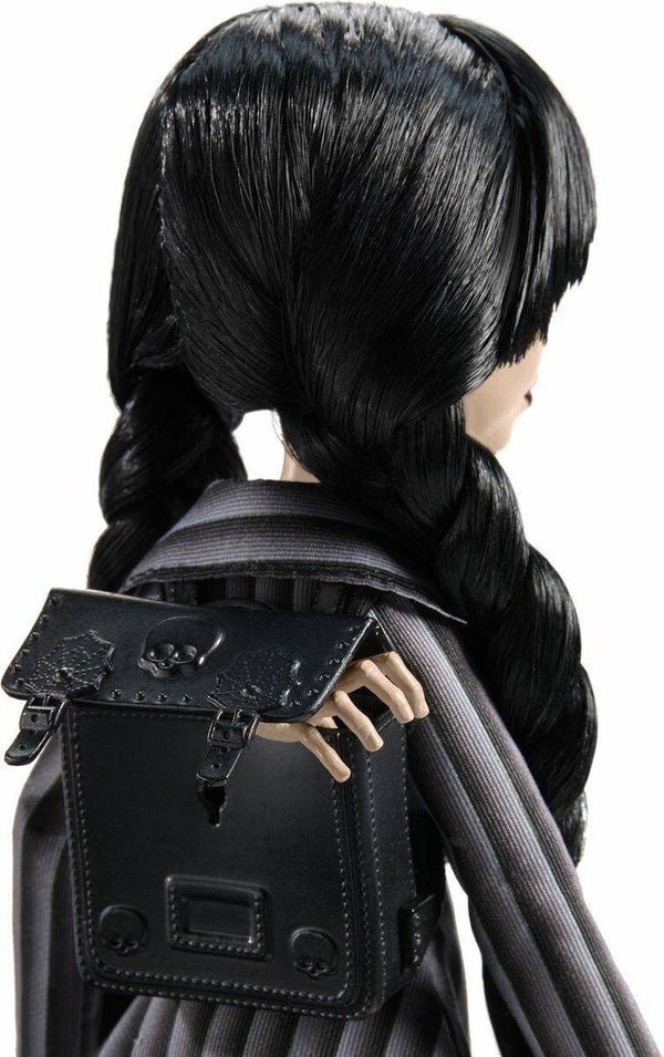 - Deze Wednesday Addams pop ziet er geweldig uit in de kenmerkende zwarte stijl en is een interpretatie van het hoofdpersonage uit de serie, met haar iconische gothic Monster High stijl.