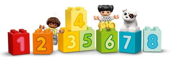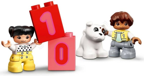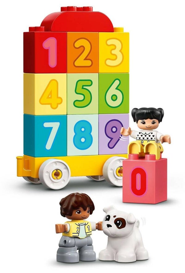 • Bevat 10 genummerde stenen die kinderen op de wagons van de trein kunnen zetten, plus LEGO DUPLO figuren van een jongen, een meisje en een hond voor allerlei fantasierijke rollenspellen.