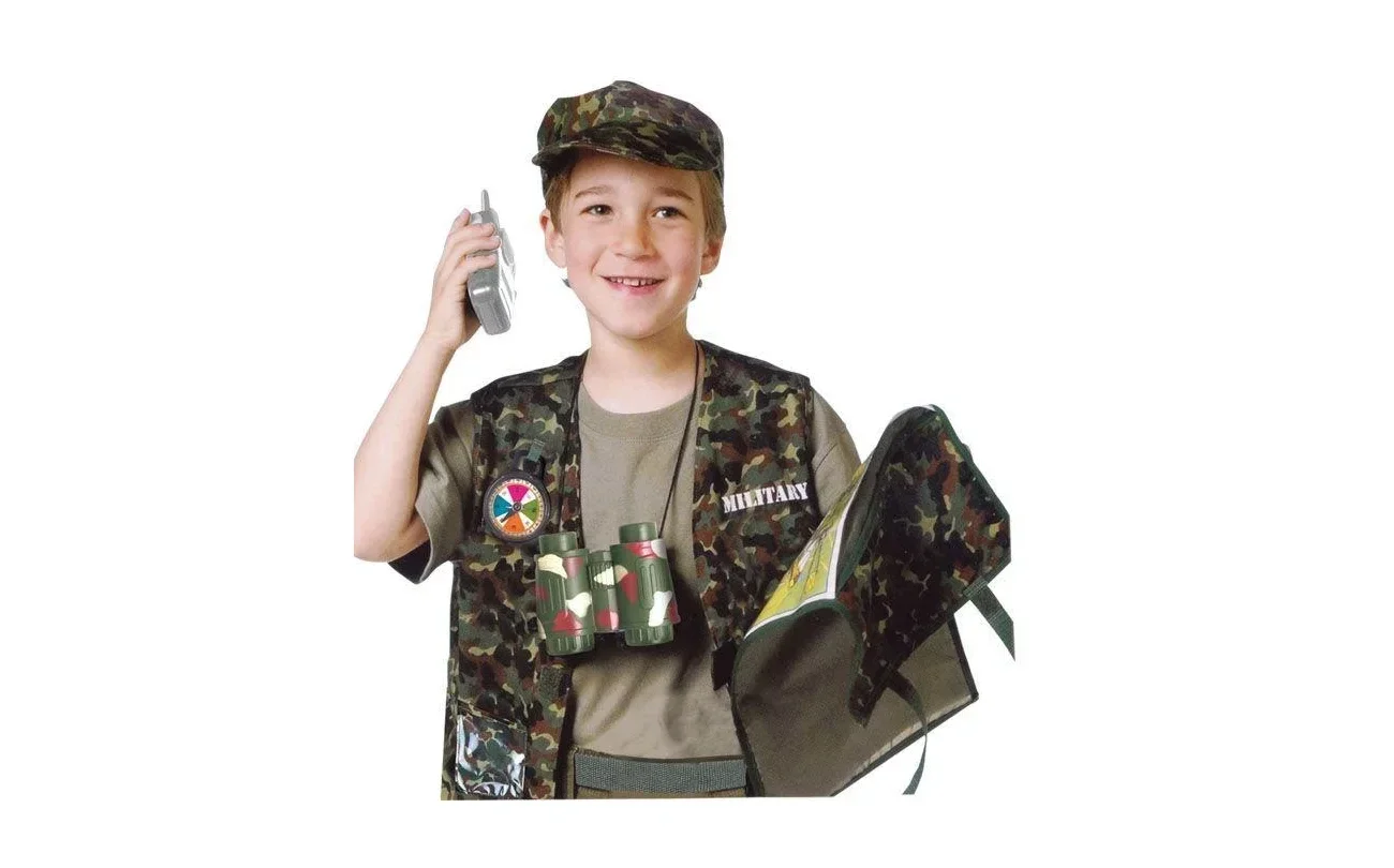 Outfit compleet met vest, pet, plastic accessoires en kaart