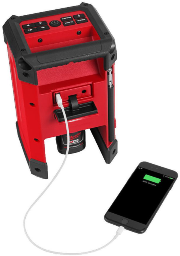 - Ingebouwde oplaadfunctie voor het snel en gemakkelijk opladen van een M12™ accu of elektrische apparaten via een USB-poort