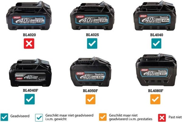 - Gewicht met XGT BL4050F accu 5,1 kg