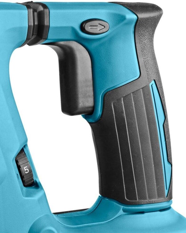 - Uitgerust met twee verwisselbare boorkoppen: een SDS-PLUS en snelspanboorkop.